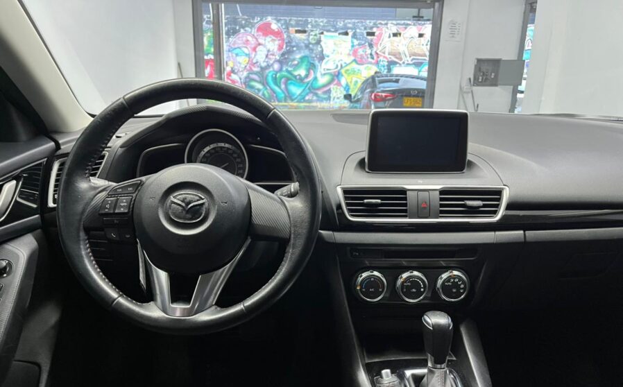 Mazda 3, 2017, usado, 64,000 km. Este sedán plateado cuenta con un motor de 2.0 litros que ofrece 153 hp y una transmisión automática. Su dirección hidráulica y tracción delantera brindan una conducción cómoda y segura. Ideal para quienes buscan un vehículo práctico y eficiente, este modelo incluye aire acondicionado y frenos ABS. Con capacidad para cinco pasajeros, es adecuado para el uso diario y viajes cortos.